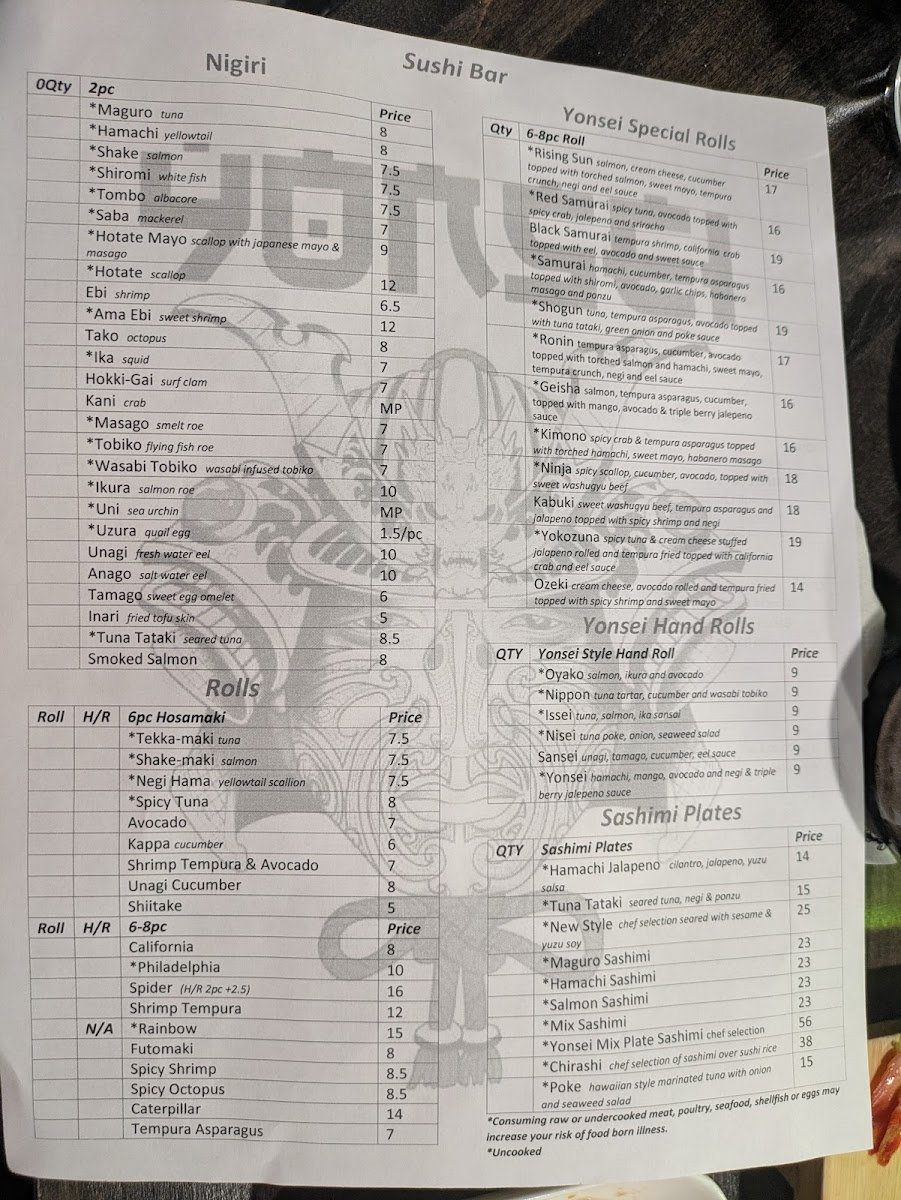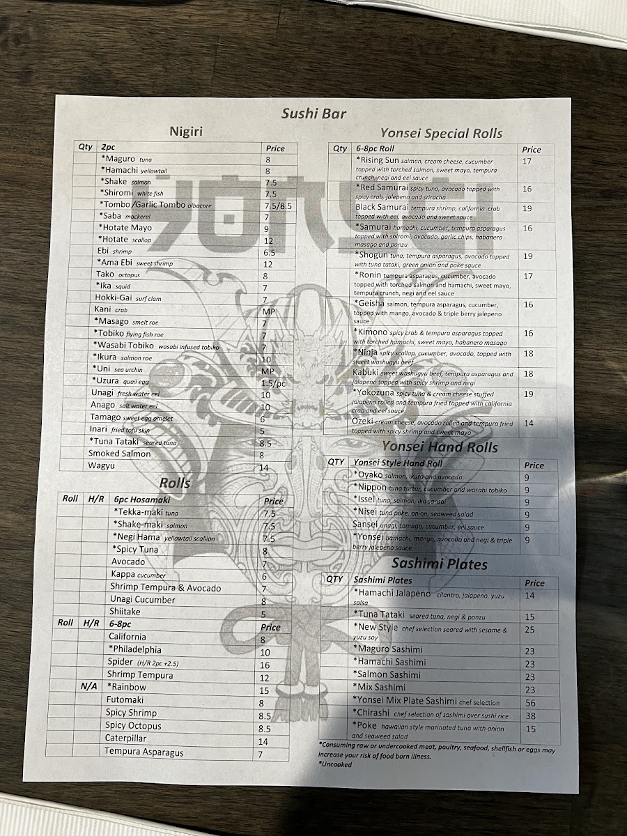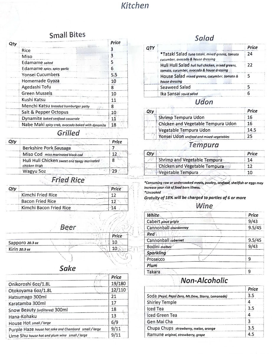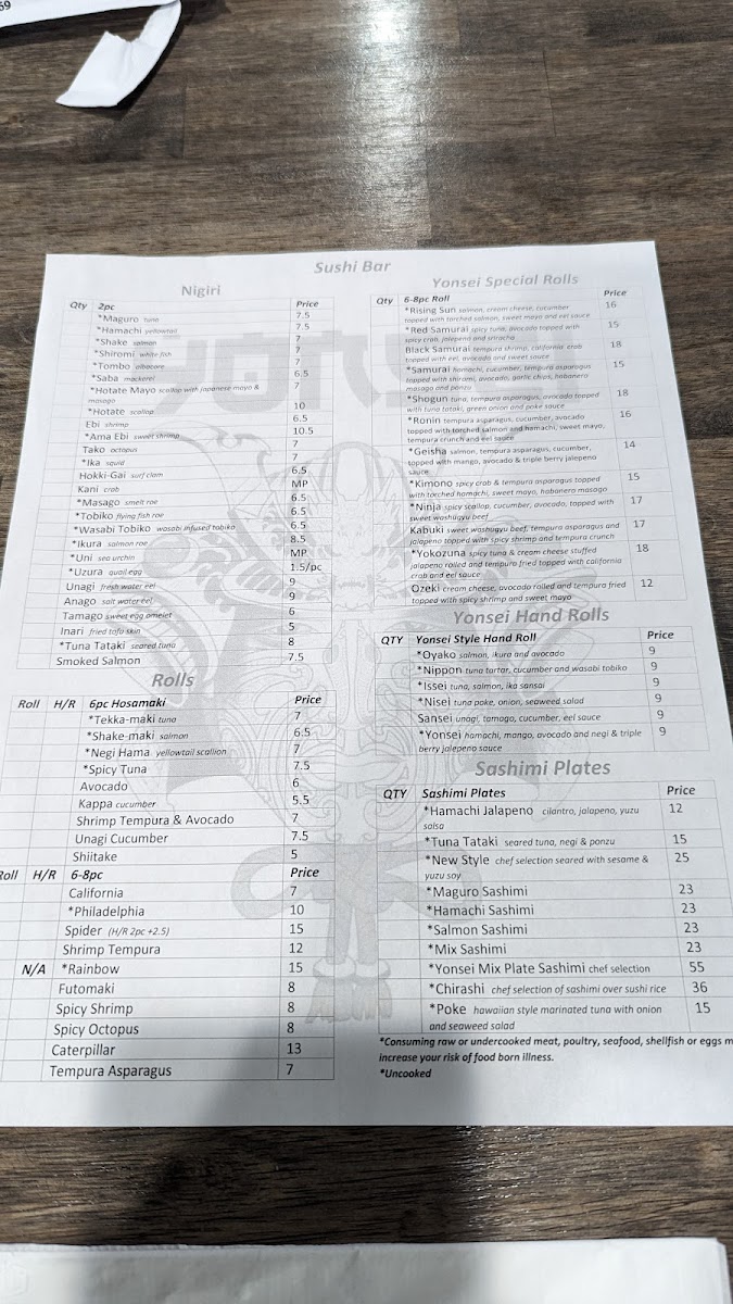 Yonsei offers a thoughtfully curated menu that balances fresh, quality sushi with comforting Japanese-inspired dishes. The selection is approachable yet refined, featuring staples like shrimp tempura & avocado, spicy tuna rolls, and a variety of sashimi plates. Light salads and warm options such as agedashi tofu and kimchi fried rice provide satisfying choices for any appetite.